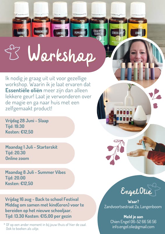 Ik nodig je graag uit uit voor gezellige workshop. Waarin ik je laat ervaren dat Essentiële oliën meer zijn dan alleen lekkere geur! Laat je verwonderen over de magie en ga naar huis met een zelfgemaakt product!