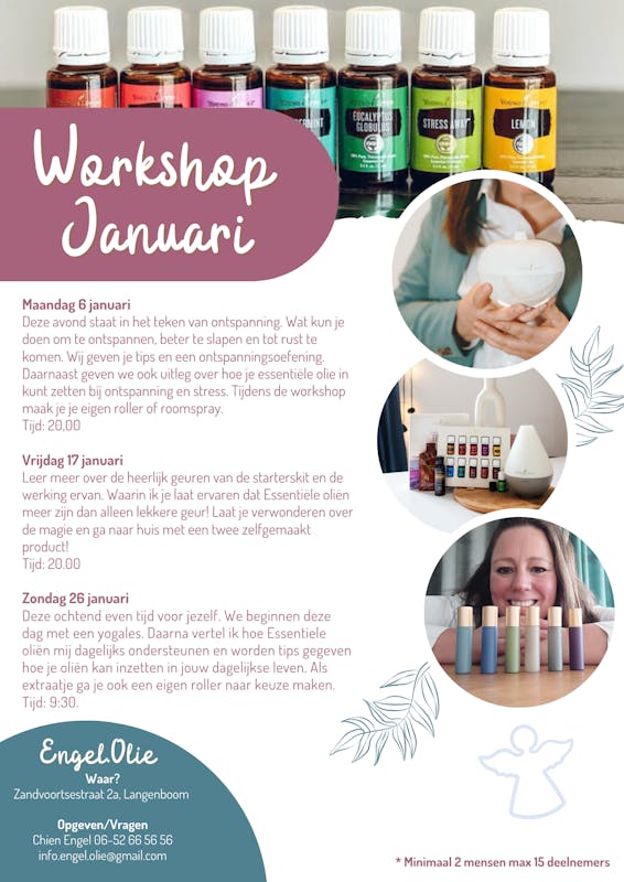 Deze ochtend even tijd voor jezelf. We beginnen deze dag met een yogales. Daarna vertel ik hoe Essentiele oliën mij dagelijks ondersteunen en worden tips gegeven hoe je oliën kan inzetten in jouw dagelijkse leven. Als extraatje ga je ook een eigen roller naar keuze maken.