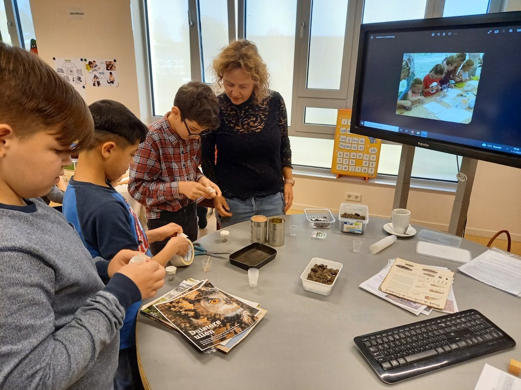 LEZING UILEN EN UITPLUIZEN BRAAKBALLENDe 50 leerlingen van groep 4/5 alsmede de internationale klas met leerlingen uit Iran, Oekraïne, Syrië, Kroatië etc. waren zeer geïnteresseerd in het leven van de Uilen Wereldwijd zijn er 136 soorten Uilen waarvan er 6 soorten in NL levenDe grootste uil is de Oehoe 70 cm en de kleinste is de steenuil 21 cmDaartussen de ransuil, kerkuil, bosuil, velduil. De film van de Oehoe met 3 jongen op een balkon maakte veel indruk.De braakballen van de uilen waren voor de leerlingen een ware ontdekkingsreis. Van elk botje werd nagegaan waar het in de muis had gezeten, het meest interessant was wel de schedel met kaak en de spitse scherpe voortandjes.In een potje werden de gevonden botjes meegenomen om thuis verder te vertellen Groetjes JacMeer berichten van Creatief met wilgen en educatieve natuuractiviteiten