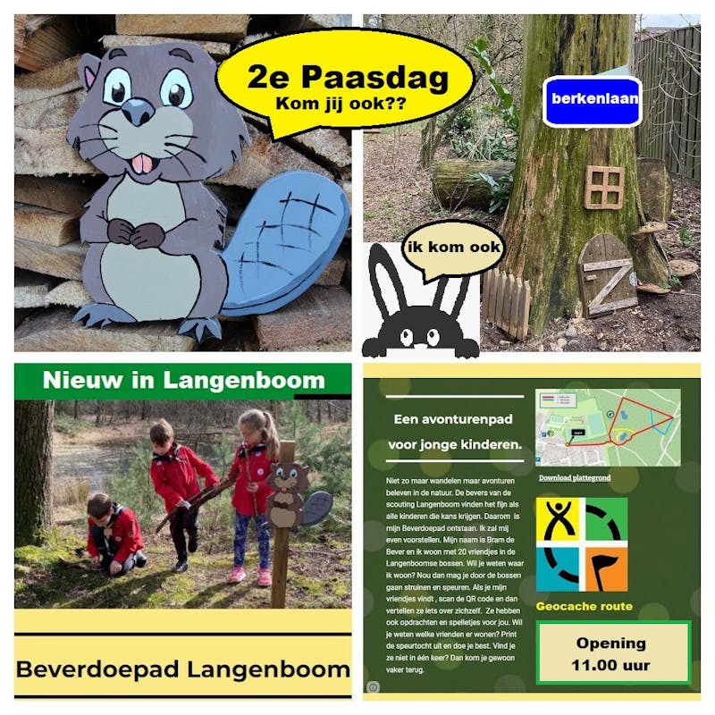 Op 2e paasdag opent scouting Langenboom in de Langenboomse bossen een doepad voor kinderen. Bram de bever neemt je mee op je stuin tocht door de bossen en verteld je over de natuur.