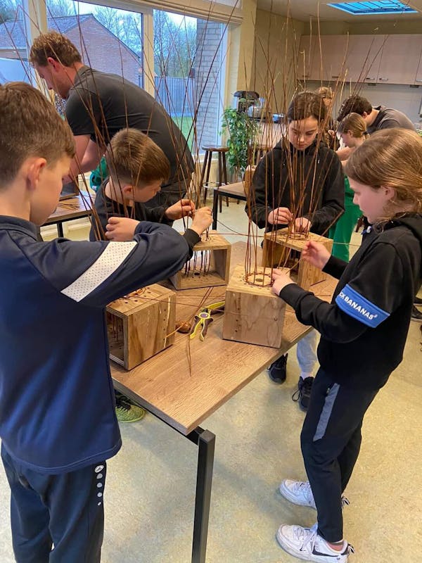 Gister hebben we een leuke workshop wilgentenen vlechten gevolgd van Jac de Cock. De kinderen hebben een mooi mandje gevlochten voor de paasdagen. Bedankt Jac!