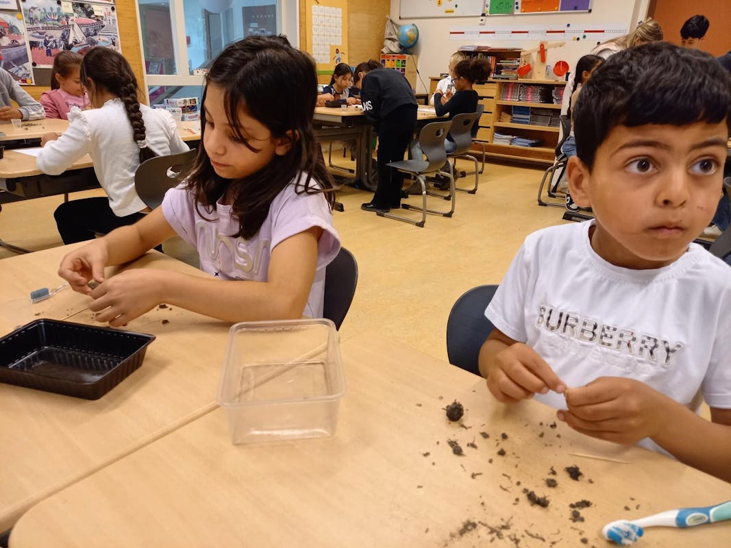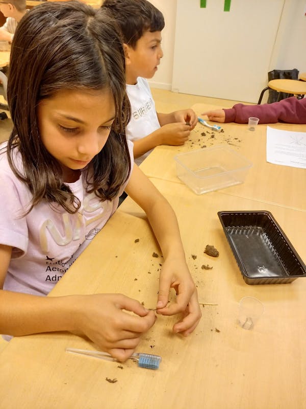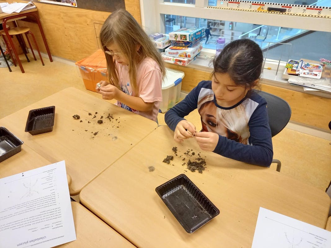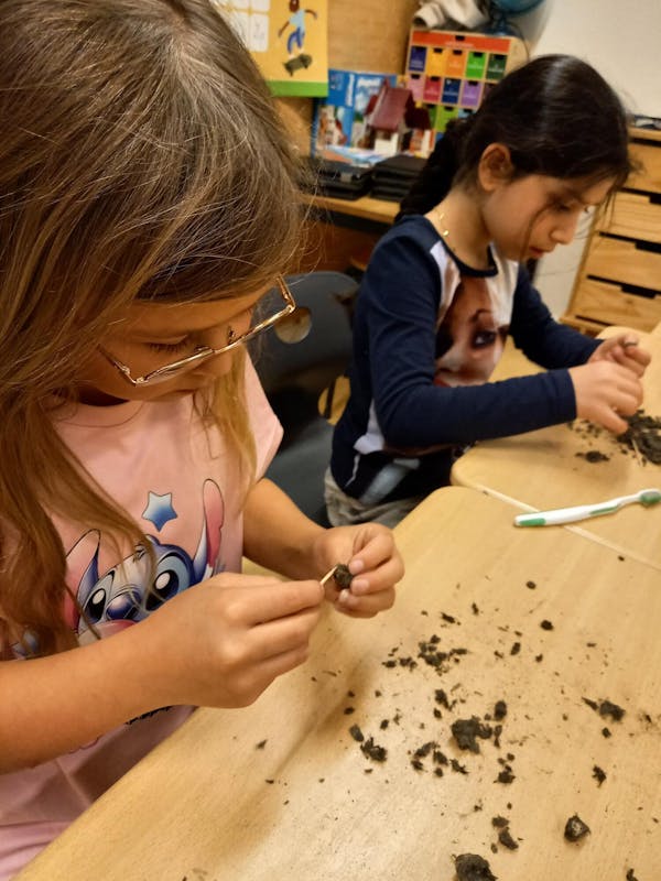 Met uitleg en hulp van Roswitha Keizers werden de braakballen uitgeplozen en de botjes in een potje mee naar huis genomen.